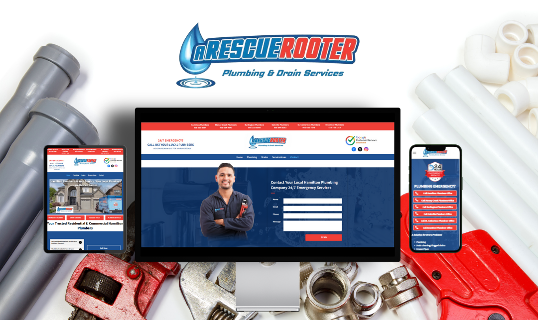 A Rescue Rooter is a plumbing and drain service provider serving Southern Ontario, including Hamilton, Burlington, Oakville, St. Catharines, Grimsby, Brantford, Stoney Creek, and Ancaster. Known for their 24/7 emergency service and trusted local reputation, A Rescue Rooter wanted to grow their customer base and strengthen their online presence across multiple regions.